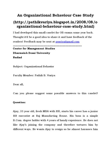 Read Online Organisational Behaviour Case Studies With Answers Reader