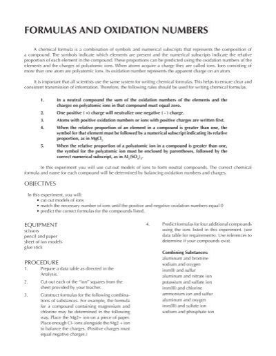 Read Online Formulas And Oxidation Numbers Lab Answers PDF